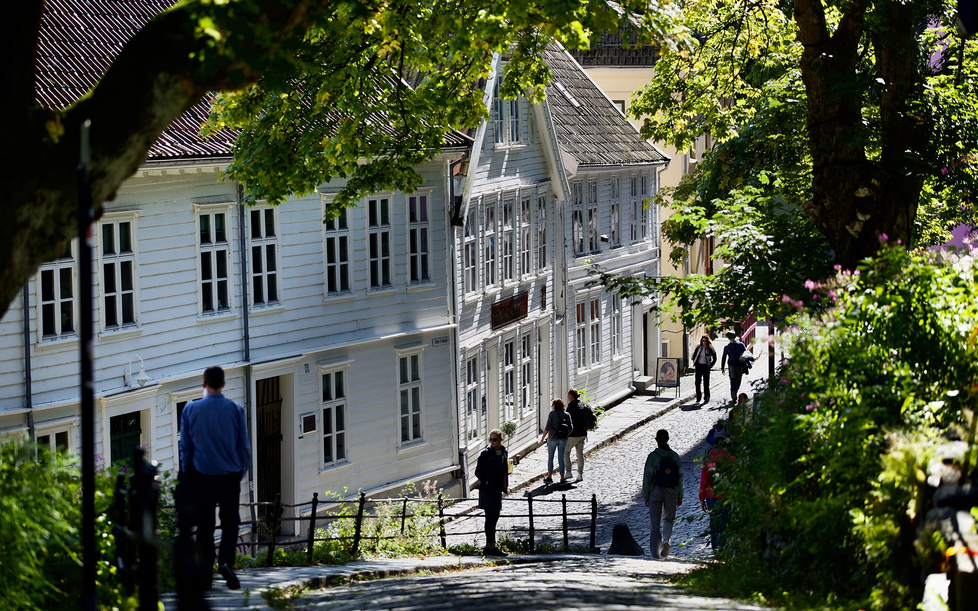 Kombinasjonen av sjø, historisk bebyggelse og grønne parkrom gir en variert og opplevelsesrik skolevei.